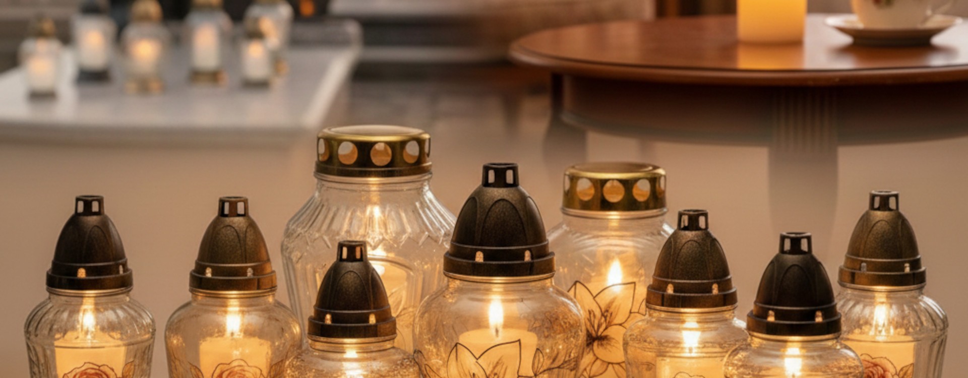 Dla pań, które za życia ceniły sobie styl i klasę, przygotowaliśmy ofertę zniczy premium. Szkło mrożone, lustrzane wykończenia czy nowoczesne, minimalistyczne formy w kolorach szampana i różowego złota to doskonały sposób na podkreślenie szacunku i pamięci w sposób estetyczny i godny.
